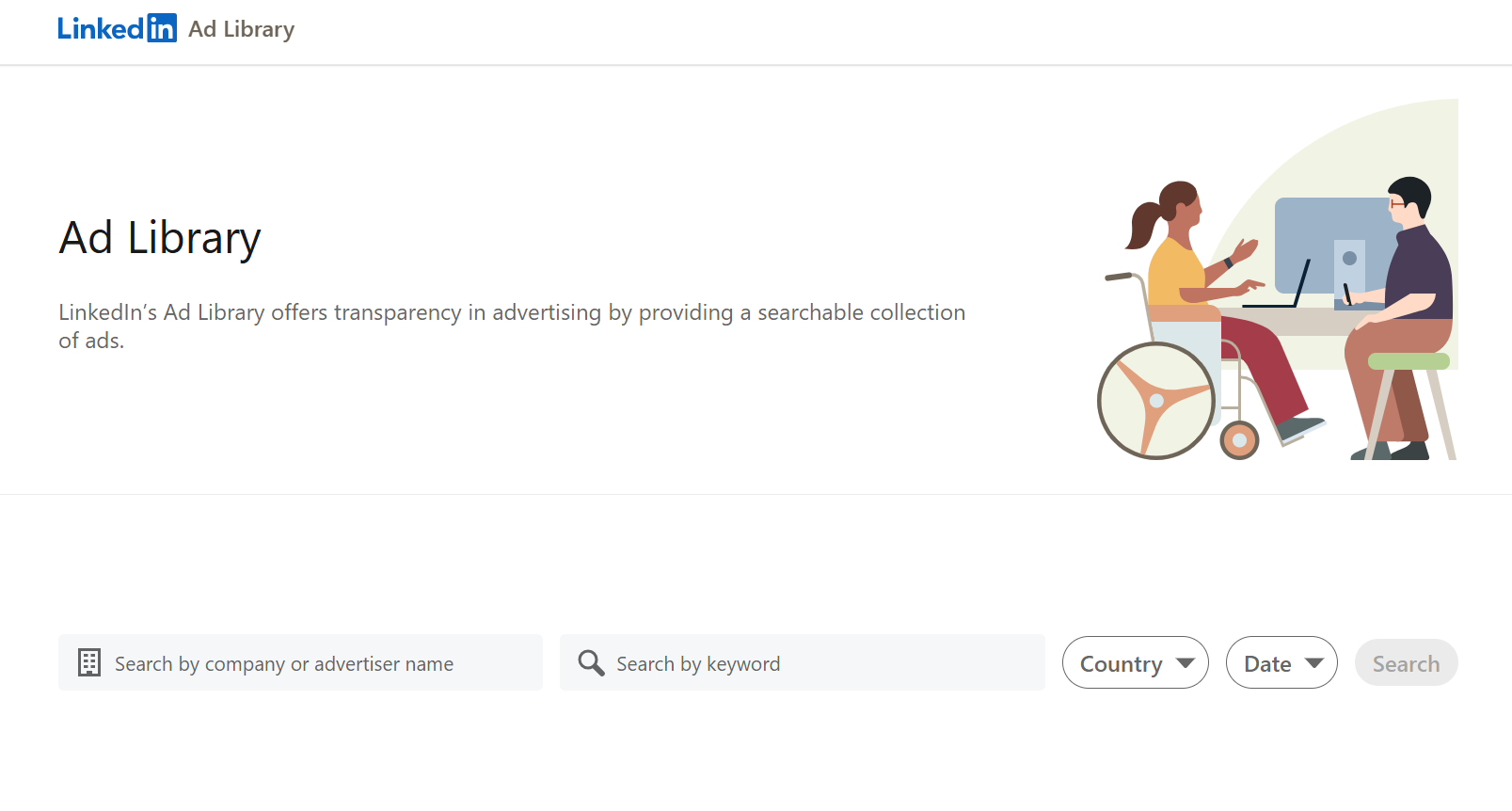 You can also access the LinkedIn Ad Library directly at linkedin.com/ad-library/home, where you can search by: